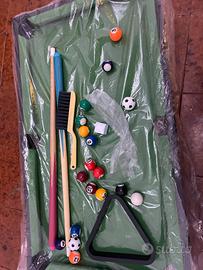 Biliardo in versione piccola per giocare comodamente da casa. Dotato di tutti gli accessori.