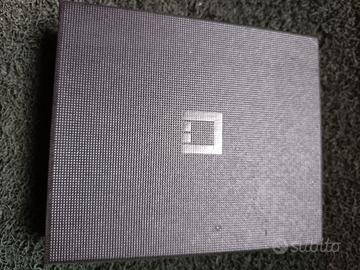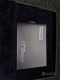 Porta foglietti in pelle nera della S. T. Dupont. Non essendo ingombrante come dimensioni, è ideale per annotare appunti, idee e numeri di telefono. Su un lato, c'è il normale taccuino, dove i fogli sono tenuti da 4 angoli intagliati. Sull'altro lato, c'è una fessura in cui si possono infilare fogli di scorta oppure qualsiasi tessera che abbia le dimensioni di una carta di credito standard.