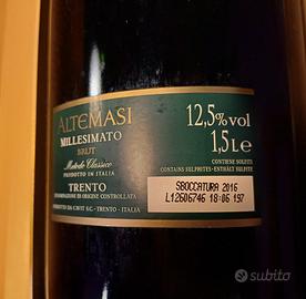 Magnum Altemasi Trentodoc millesimato 2005 Edizione limitata. Degorgement Tardif. Bottiglia tenuta sempre nella sua scatola in cantina a temperatura ed umidità costante.