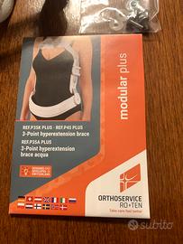 Iperestensore a Tre Punti Modularplus35k Ro+Ten · Struttura in lega leggera di alluminio. Taglia MS. Usato solo due volte. Iperestensore a tre punti Modular Plus della marca Orthoservice RO+TEN. Si tratta di un dispositivo medico utilizzato per la stabilizzazione della colonna vertebrale. Realizzata in lega leggera di alluminio, progettata per essere modulare e sostituire il corsetto gessato. Placca sternale fluttuante e placca posteriore posizionabile sia in orizzontale che in verticale per adattarsi alle esigenze del paziente. Indicato per fratture traumatiche, cedimenti vertebrali dorsali o dorso-lombari (T10-L1/L2) su base osteoporotica o metastatica, e artrosi dorso-lombare.