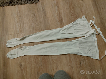 Calze anti trombosi post intervento di colore bianco con legaccio e bottoni da chiudere in vita, per persona con altezza 1,70 taglia 48 , usate solo 2 giorni