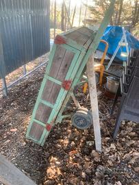 Vendo carrellino artigianale perfetto dotato di sponde e ribaltabile robusto gomme piene gemellate ! Nasce per trattorino rasaerba ma ho montato anche un gancio a pallina per auto.
