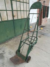 Vendo carrello manuale tipologia "carrello bicicletta" con 3 ruote piene, ruota posteriore girevole. Ampio portacasse posteriore (tra i manubri) Altezza della spalla regolabile