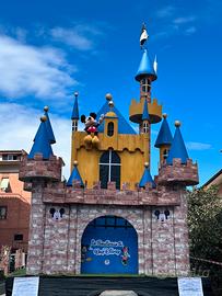 Vendo carro allegorico rappresentante castello Disney, realizzato in legno polistirolo, tubi e cartone Alto 4,50mt Largo 2,50 mt Profondo 1,80mt