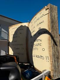 Salve per sgombero capannone propongo carro allegorico dal tema "Un libro per sognare". Misure: Gelati altezza 1.50 Mt I due pupazzi laterali altezza 1.00 Mt Elfo centrale altezza 3.00 Mt Libro altezza 2.00 Mt Accetto scambi fate le vostre proposte e sarete ricontattati. Se realmente interessati non esitate a contattarmi prezzo in privato...si vende senza carrello solo i personaggi!!! Ci troviamo in Calabria?