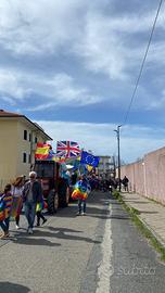 Per mancato ritiro ripropongo carro di carnevale tema "La pace nel mondo" Completo di bandiere , circa 25 vestiti e pannelli laterali Per info contattatemi in privato