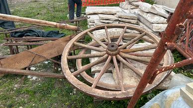 Vendo come da foto illustrate carro da trino antico con balestre ed altri accessori antichi che testimoniano.