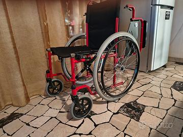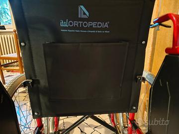 Carrozzina ad autospinta marca Italortopedia. Condizioni perfette, pari al nuovo. Pedali rimuovibili, braccioli mobili, pieghevole per il trasporto. Interamente lavabile. Portata massima 130kg. Codice articolo CSRG008.