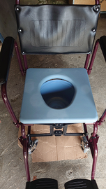 Sedia a rotelle con WC Carrozzina comoda per anziani e disabili in acciaio Inox con bacinella WC, braccioli e poggiapiedi removibili, ruote con freno e confortevole seduta in plastica interamente lavabile