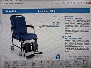 marca Surace modello Allegra 1 con wc, regolabile,appoggiagambe e pedane per piedi ottime condizioni, come nuova