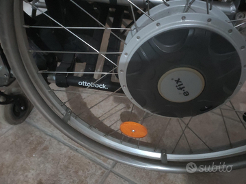 Carrozzina elettrica per disabili adulti, manca della batteria. Cuscino antidecubito a parte non visibile in foto.