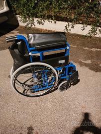 Carrozzina usata solo 2 mesi blu, richiudibile con freni e appoggiapiedi richiudibili scomparto porta oggetti e cintura di sicurezza