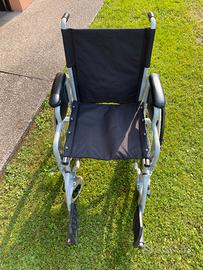 Mediland carrozzina autospinta colore grigio e nero bracciolo e pedane estraibili.