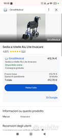 Carrozzina alluminio ultraleggero seminuova , usata pochissimo marca Invacar alu ligt .