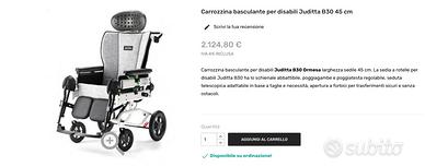 Carrozzina per disabili basculante marca Ormesa modello Juditta, come nuova, prezzo originale oltre 2000 euro, ritiro a Pozzuoli (Monteruscello).
