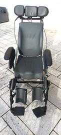 Carrozzina basculante con diverse posizioni fino a sdraiato. Ruote grandi, cuscino antidecupito, braccioli estraibili. Usata 2 mesi. Ottime condizioni.