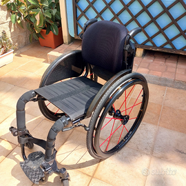 Vendo carrozzina per disabili ultraleggera in fibra di carbonio. Ottime condizioni con gomme e cerchi di ricambio per sterrato. Prezzo trattabile.