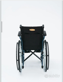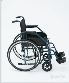 Carrozzina standard pieghevole ad autospinta o transito. o Rivestimento in Nylon lavabile o Braccioli ribaltabili o Appoggiagambe ribaltabili ed estraibili, pedane regolabili in altezza e dotate di cinturino ferma tallone o Ruote posteriori da 24" o Ruote anteriori da 8"
