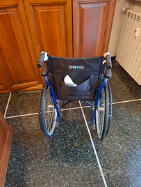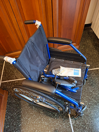 Con telaio pieghevole in acciaio. Braccioli e pedane ribaltabili, estraibili e regolabili in altezza, utilizzata ..... purtroppo una sola volta. Pari al nuovo.