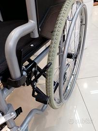Vendo carrozzina pieghevole della Mod. SPES con ruote estraibili anti foro, pedane smontabili e regolabili in altezza e discesa, braccioli rialzabili per salirci meglio, doppia crociera per portata fino a 120Kg, ruotine di sicurezza interne ( vedi dietro ) seduta da 43cm, largezza 61cm