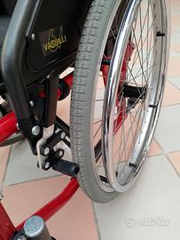 Vendo carrozzina pieghevole Mod. VASSILLI EVOLUTION in buone condizioni, ha i braccioli che si alzano, le pedane che si tolgono e si piegano, ed è omologata per portare fino a 120Kg, ha la doppia crociera e le gomme sono ancora nuove, come seduta fa 44 cm e di larghezza 62 cm