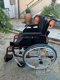 Vendo carrozzina seduta 50 con ruote alte usata veramente molto poco( due volte). Braccioli e manubri esterni che si alzano.