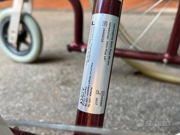 Telaio in acciaio verniciato, seduta e schienale confortevoli, ruote posteriori grandi e resistenti.