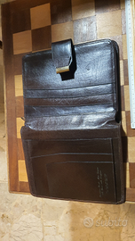 Cartellina in pelle, mai usata, per agende e quaderni, con scomparto a zip per fogli e documenti.