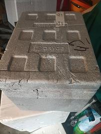 Come da foto vendo cassa in polistirolo con coperchio per vari usi, (usata)...mis 39x29 h 29.. (vedi foto)