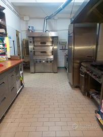 Sono comprese: forno grande elettrico, banco pizza, banco tavola calda, friggitrice, impastatrice, griglia a gas per kebab, frigoriferi e celle frigoriferi, affettatrice, TV