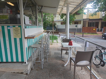 L'attività presenta un chiosco come in foto e uno spazio esterno con concessione comunale per tavolini e sedie.