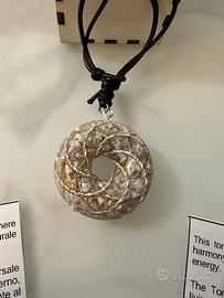 Questo ciondolo toroidale è stato creato per sostenere l'armonia interiore, il centramento e il flusso naturale della tua energia vitale. La forma del Toro rappresenta il modello universale dell'energia vivente: un campo che nasce dall'interno, si espande verso l'estero e ritoma costantemente al cuore. È il simbolo dell'equilibrio profondo tra cielo e terra, tra spirito e materia, tra intenzione manifestazione. e Il pendente contiene: ametista - pietra della connessione spirituale e della protezione sottile, favorisce la calma, la chiarezza e l'apertura verso i piani superiori pietra di luna - cristallo dell'intuizione e dell'energia femminile, sostiene la sensibilità, l'equilibrio emotivo e la connessione con i ritmi naturali acquamarina - porta calma e chiarezza, sostenendo l'espressione autentica della verità interiore magnesite - pietra del rilassamento profondo e della consapevolezza, favorisce uno stato di pace e l'apertura alla meditazione o quarzo trasparente - amplificatore naturale di chiarezza, l'intenzione l'armonizzazione dell'intero campo energetico o anello tensoriale a 177 MHz - frequenza conosciuta per l'armonizzazione, il riequilibrio e la rigenerazione energetica Il pendente è collocato in una scatola contrassegnata dal simbolo dello Sri Yantra, una rappresentazione sacra della creazione e della coscienza divina. Questo simbolo sostiene l'allineamento, l'espansione della coscienza e la riconnessione con la fonte universale. Indossalo con amore, rispetto e gratitudine, lasciando che sostenga il tuo equilibrio naturale. Con amore e luce