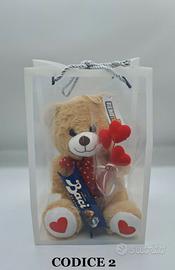 COMPOSIZIONE CON PELUCHE E BACI PERUGINA. IDEA REGALO MOLTO ROMANTICA PER LA VOSTRA RAGAZZA/COMPAGNA/MOGLIE POTETE SCEGLIERE VOI IL MODELLO PIU' COCCOLOSO DA REGALARE PER SAN VALENTINO! ABBIAMO SIA PELUCHE ORSO CHE CAGNOLINO. QUELLI DA 15 EURO SONO ALTI CIRCA 23-25 CM. I MODELLI DA 20 EURO SONO ALTI CIRCA 32-35 CM. PER QUALSIASI INFO CONTATTI VIA WHAT APP. NO CHIAMATE. CONSEGNA A MANO A PORTO S.ELPIDIO NON POTENDO METTERE TUTTE LE FOTO POTETE CONTATTARMI VIA WHAT' APP COSI POSSO INVIARE TUTTE LE COMPOSIZIONI.