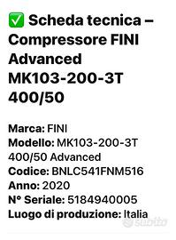 Compressore Finì Advance da 200 litri, come nuovo. Utilizzato pochissimo dopo l'acquisto per cambio attività. Occasione