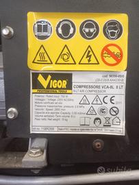 Vendo compressore Vigor per inutilizzo, usato rare volte pari al nuovo. Capacità 8 lt