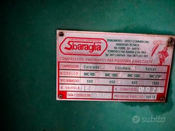 Vendo Compressore SBARAGLIA Modello Columbia SMC 1000. Tipo serbatoio 650. In buono stato come da foto. Prezzo trattabile. NON SPEDISCO