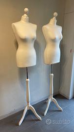 Coppia di manichini regolabili in altezza. Materiale interno poliestere, piedistallo e testa in legno bianco.