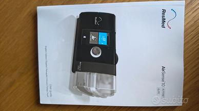 Vendo per inutilizzo dispositivo CPAP Resmed AirSense 10 AutoSet, il top di gamma per il trattamento delle apnee notturne (OSAS). L'apparecchio è stato tenuto con cura maniacale, è perfettamente funzionante e igienizzato. Caratteristiche principali: Modello: AirSense 10 AutoSet (regolazione automatica della pressione). Condizioni: Usato pochissimo, esteticamente e funzionalmente pari al nuovo. Silenziosità: Uno dei modelli più silenziosi sul mercato, ideale per non disturbare il sonno. Umidificatore integrato: HumidAir incluso per il massimo comfort respiratorio. Accessori inclusi: Alimentatore originale, borsa da viaggio Resmed, tubo standard e filtri di ricambio nuovi. Perché sceglierlo: Interfaccia intuitiva e display a colori. Funzione di rampa automatica per un addormentamento facilitato. Report del sonno consultabili direttamente sul display.