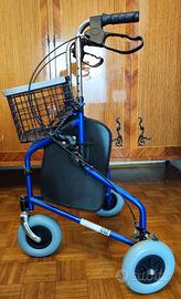 Vendo a 70 euro deambulatore a 3 ruote con freni, cestino, copri cestino e sacca porta oggetti (come da foto). Lo vendo causa inutilizzo. Il deambulatore è stato usato pochissimo, circa un paio di mesi, quindi è praticamente nuovo e non riporta graffi, strappi o altro. Non ho possibilità di trasporto. Abito a Verona, zona est.