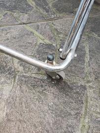 Aiuta a mantenere l'equilibrio e riduce il carico sugli arti inferiori. Utile per anziani e disabili con difficoltà motorie . In acciaio resistente. Facile da ripiegare per essere riposto in piccoli spazi ed è facilmente regolabile avendo le aste di appoggio telescopiche .