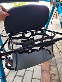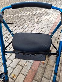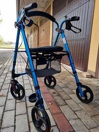 Deambulatore in alluminio con seduta con vano porta oggetti. Ruota grande adatto per esterno. Usato pochissimo. Ritiro zona Pievesestina di Cesena o Forlì zona autostrada