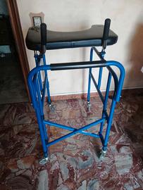 Deambulatore acquistato da nuovo in sanitaria. Il piano sopra d'appoggio si può anche togliere. Unico difetto, da un lato del piano NERO d'appoggio si è consumato.... (SOLO CONSEGNA A MANO)