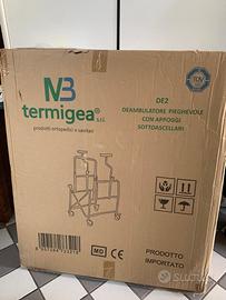 Vendo deambulatore pieghevole con appoggi ascellari nuovo, mai usato, ancora sigillato nella scatola.