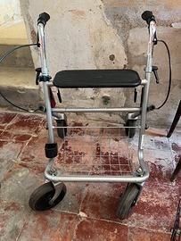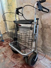Deambulatore pieghevole con 4 ruote, seduta, porta bastone, cestino.