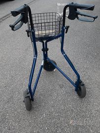 Deambulatore usato solo 1 volta come nuovo, con 3 ruote e freni funzionanti, maneggevole e pieghevole