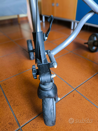 Pratico porta bastone laterale e struttura leggera in alluminio.