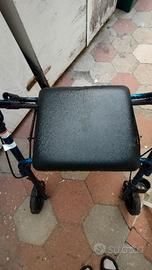 Deambulatore con freni, leggero, pieghevole, in acciaio. Misure 62,5P x 55 x 79H. Mordida seduta imbottita, larghezza del sedile 42,5cm. Peso 8,3 kg - portata 136 kg. Usato poco, in ottimo stato. Ritiro a Nettuno