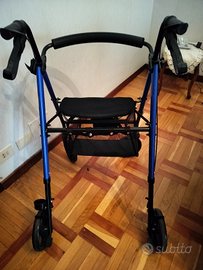 Deambulatore da esterno con seduta e capiente portaoggetti, leggero e pieghevole. È stato usato soltanto un paio di volte per prova! È veramente un affare.