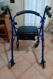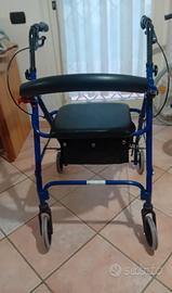 Deambulatore anche per uso esterno. Molto robusto. Quattro ruote di cui due frenanti. Con seduta morbida e schienale. Ottime condizioni. Prezzo 85 euro