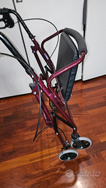 Rollator in Alluminio Pieghevole Rosso - Deambulatore per Anziani con 4 ruote, sedile e freni. Mai utilizzato